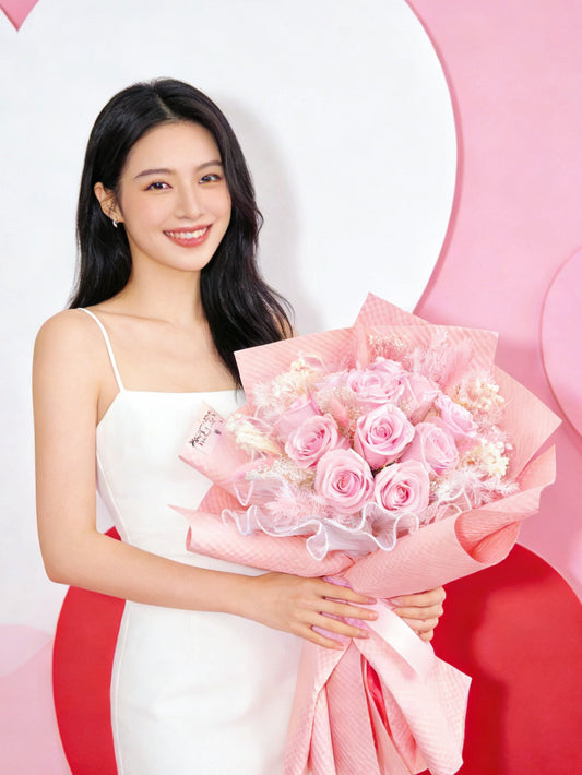 深愛你 11枝粉紅保鮮玫瑰花束|保鮮花 永生花 生日花束
