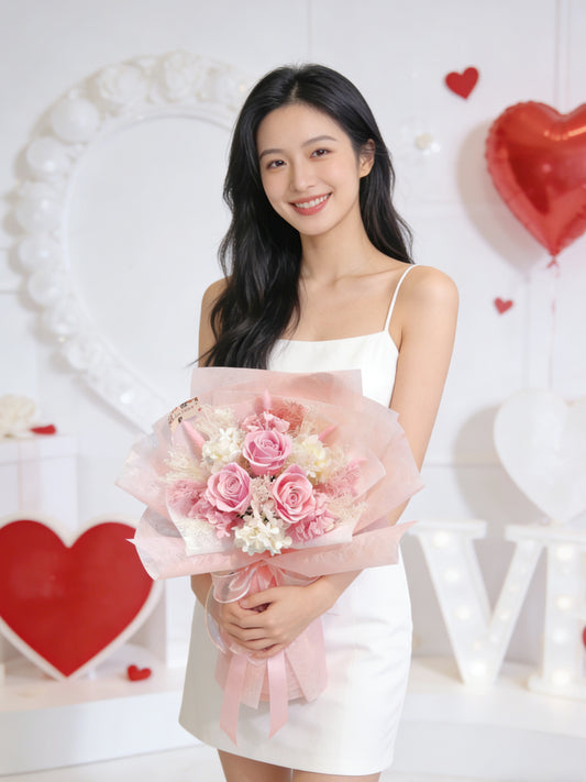 (情人節預訂) 深愛你 11枝粉紅保鮮玫瑰花束|保鮮花 永生花 生日花束