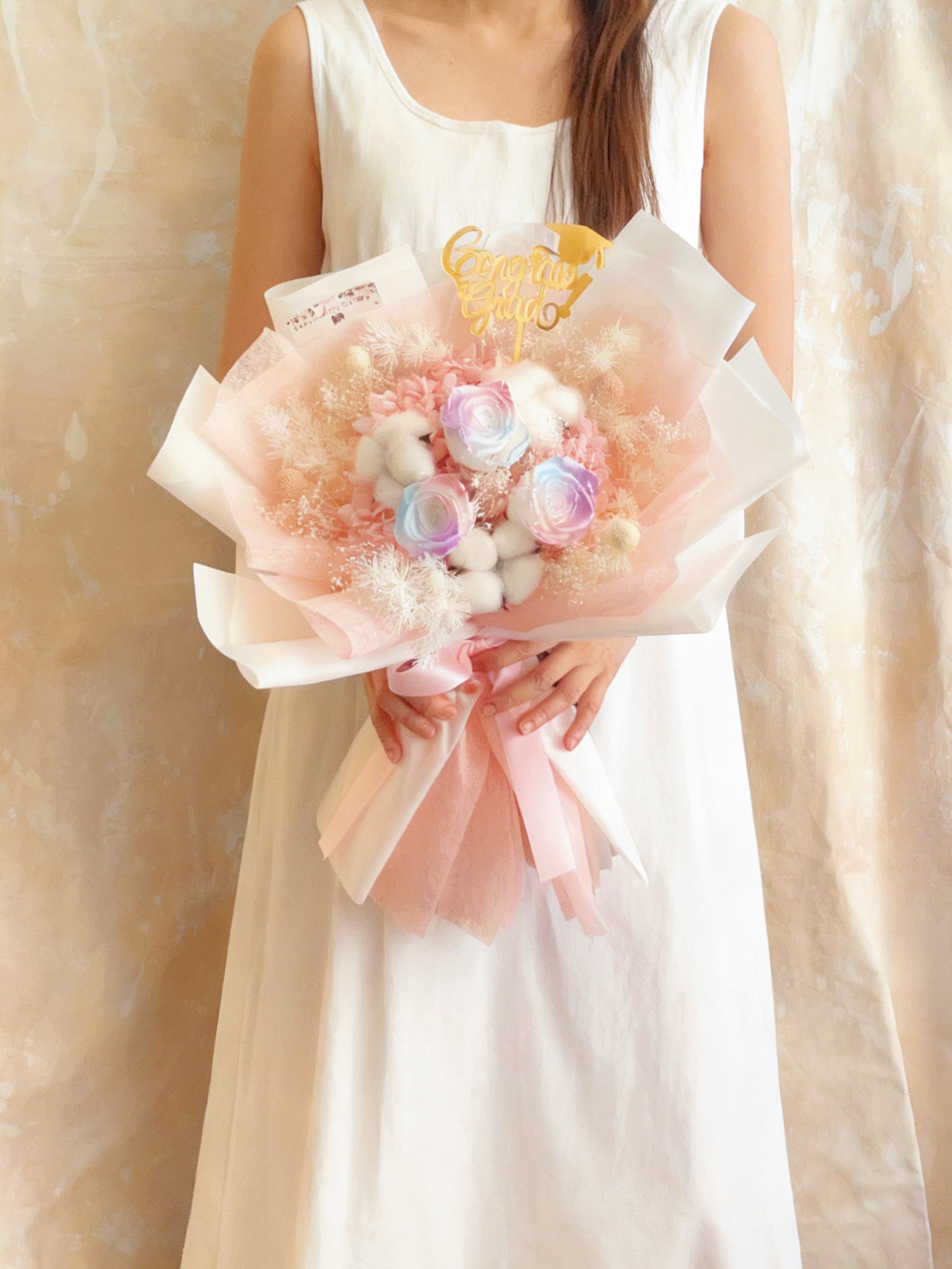 3 枝夢幻人漁珍珠色系-保鮮玫瑰花束|保鮮花 永生花 畢業花束