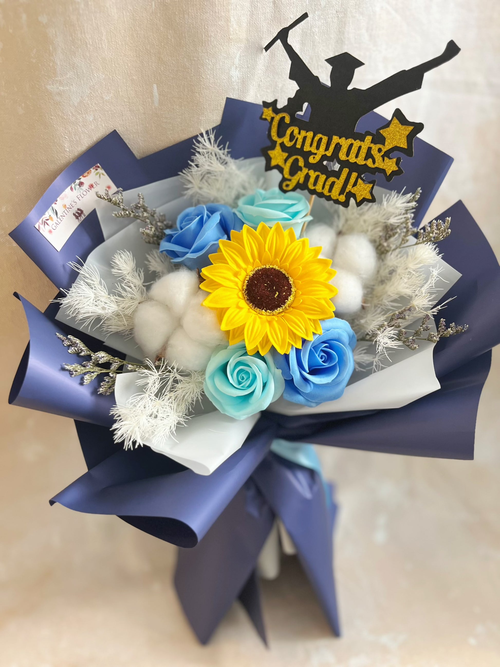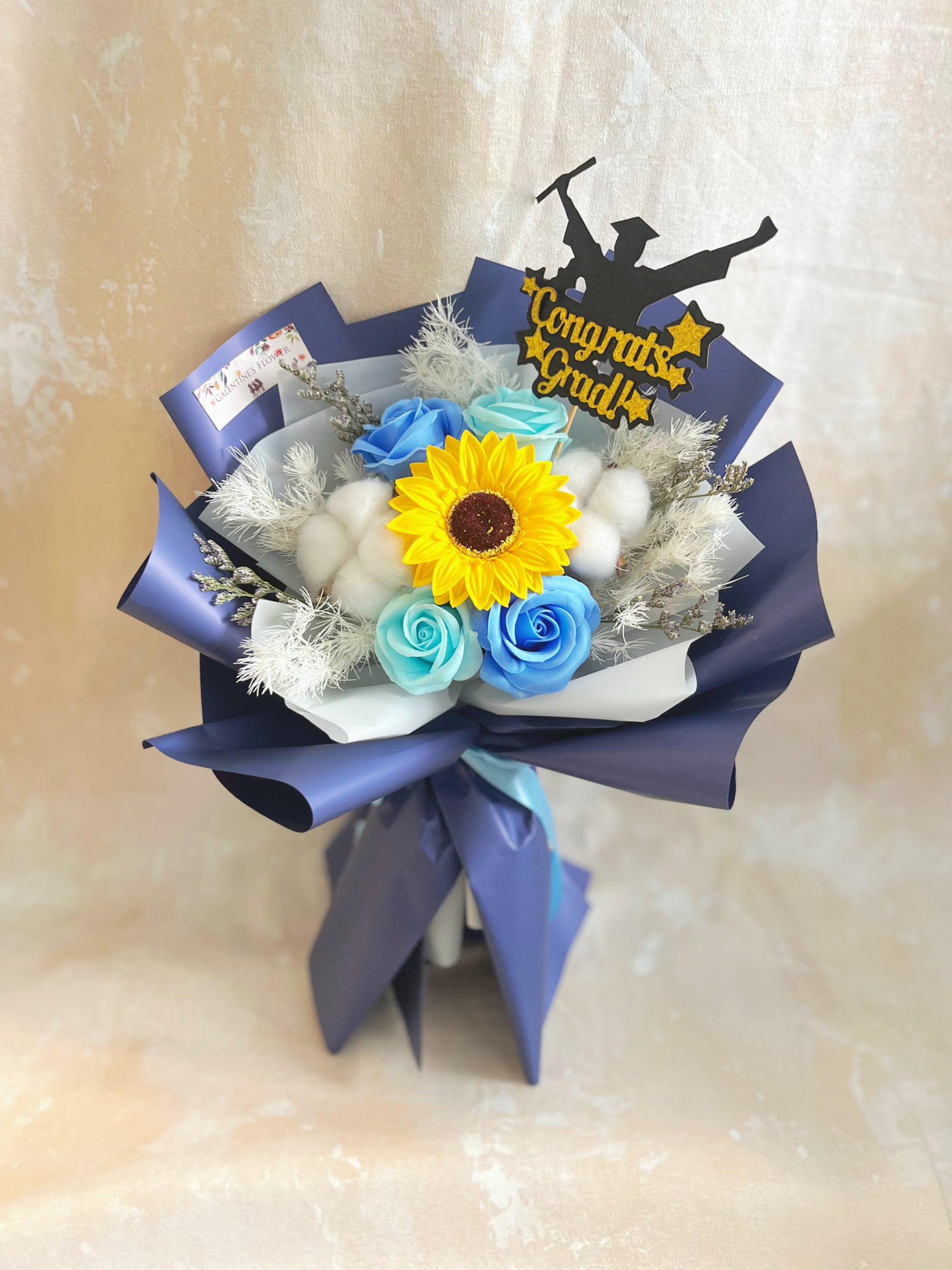 聰明智多星~小版畢業花束精選 1枝太陽花花束 + 玫瑰花|香梘花生日花束 中學 小學 幼稚園