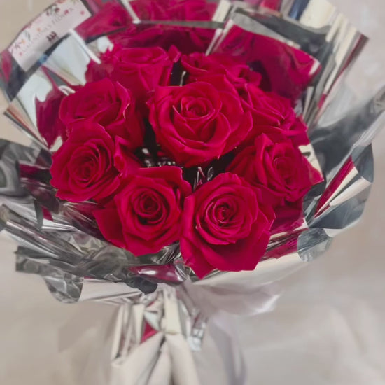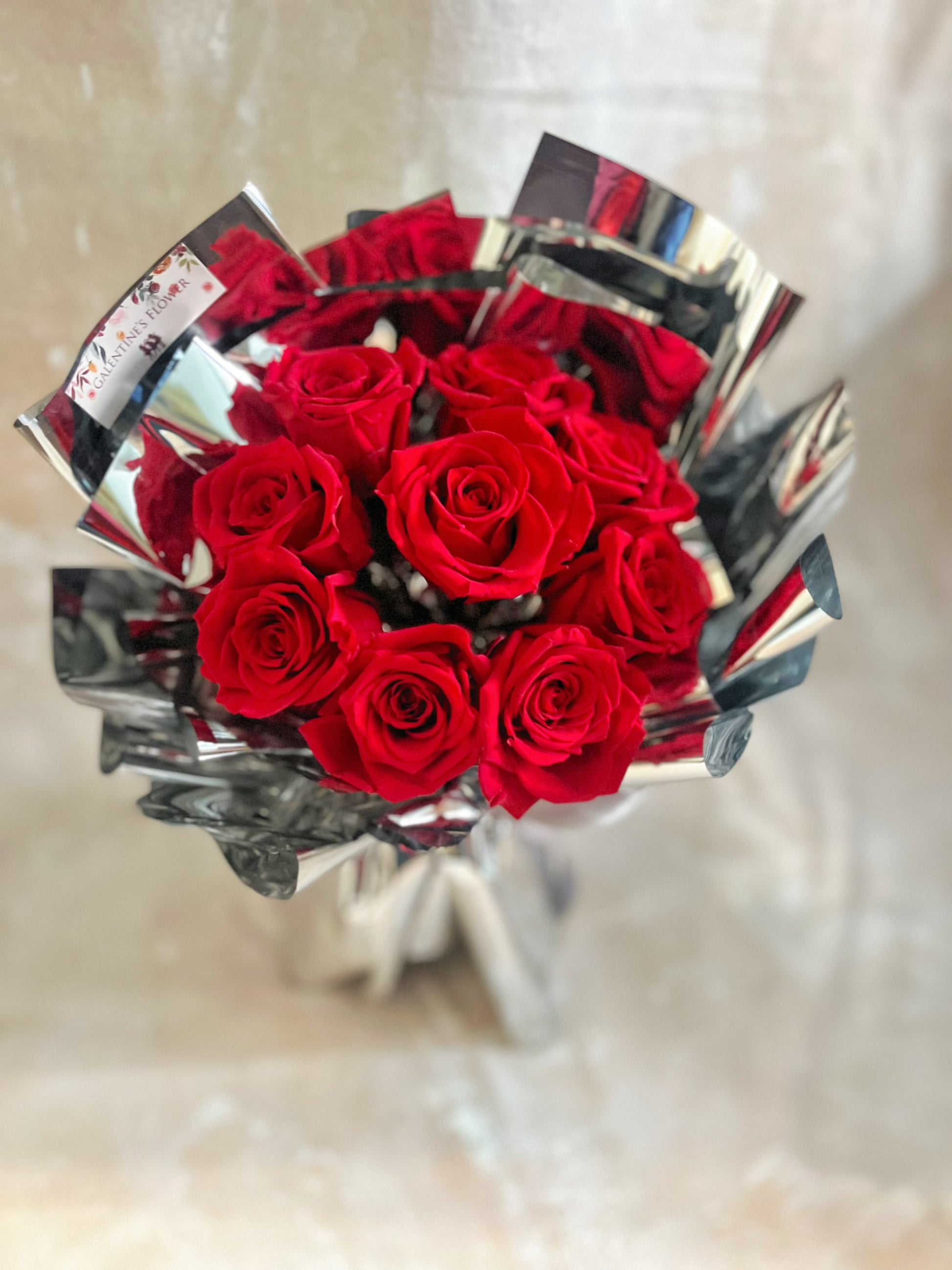 時尚打卡鏡面9枝保鮮玫瑰花束|保鮮花 永生花 畢業花束