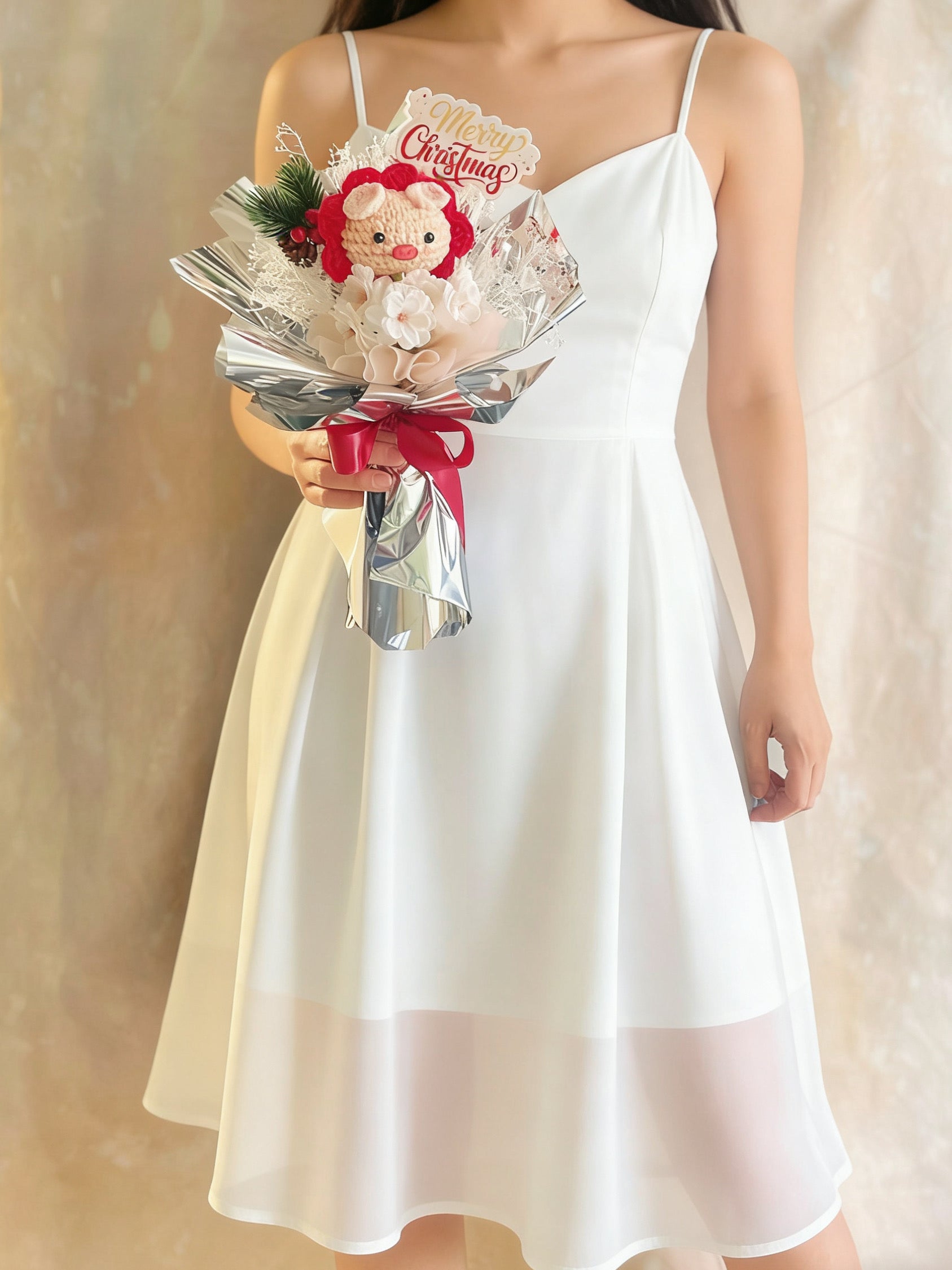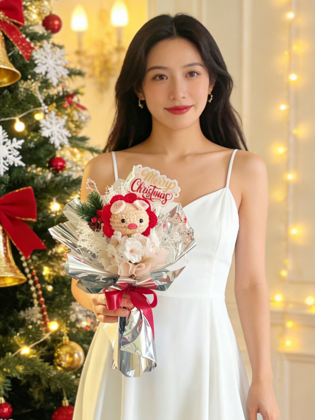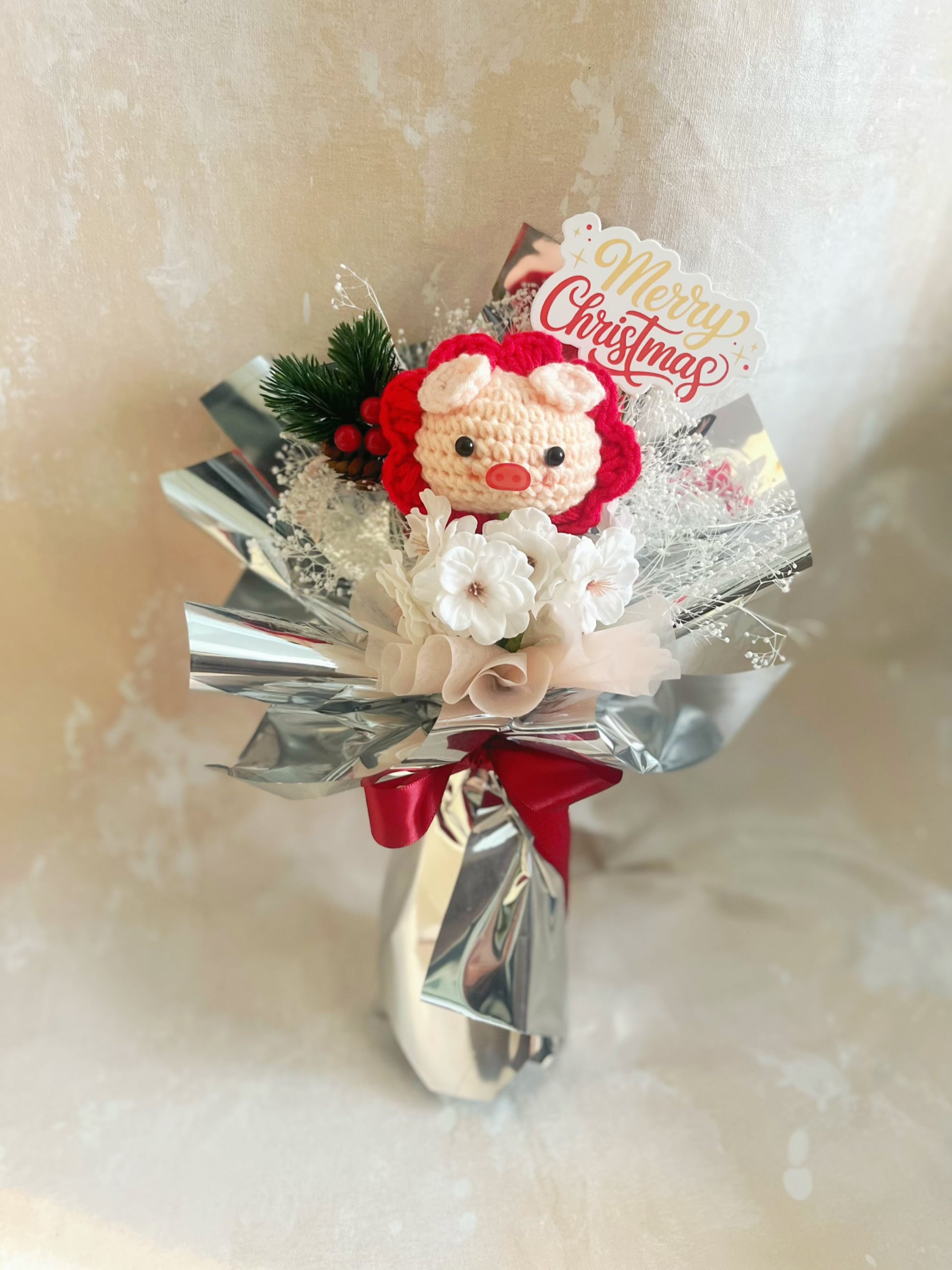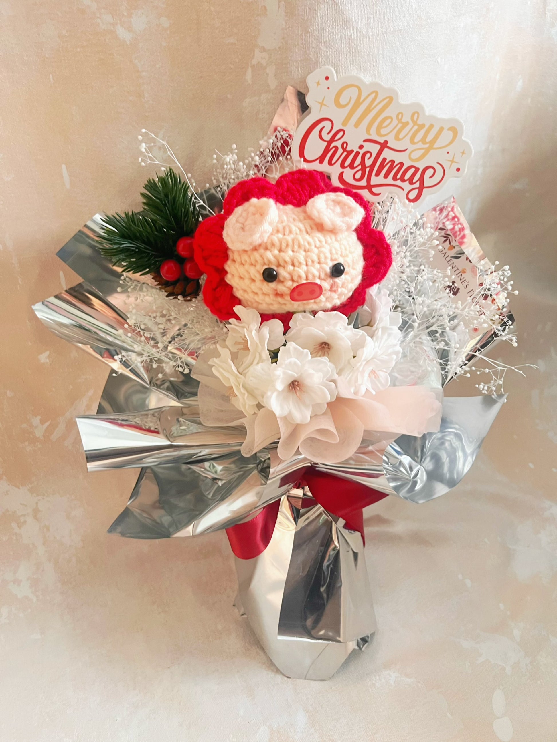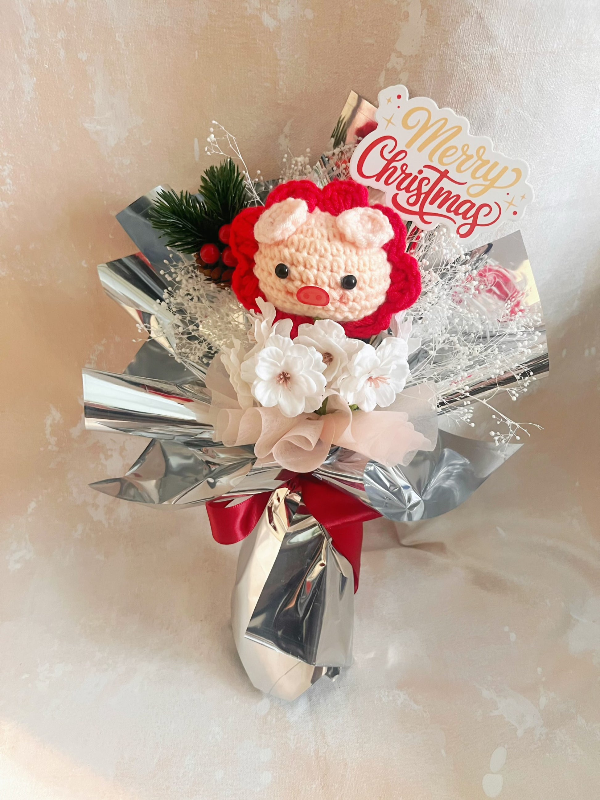 聖誕 小紅豬 玫瑰針織花束 畢業禮禮物 畢業花束 公仔花束 生日花束 中學 小學 幼稚園