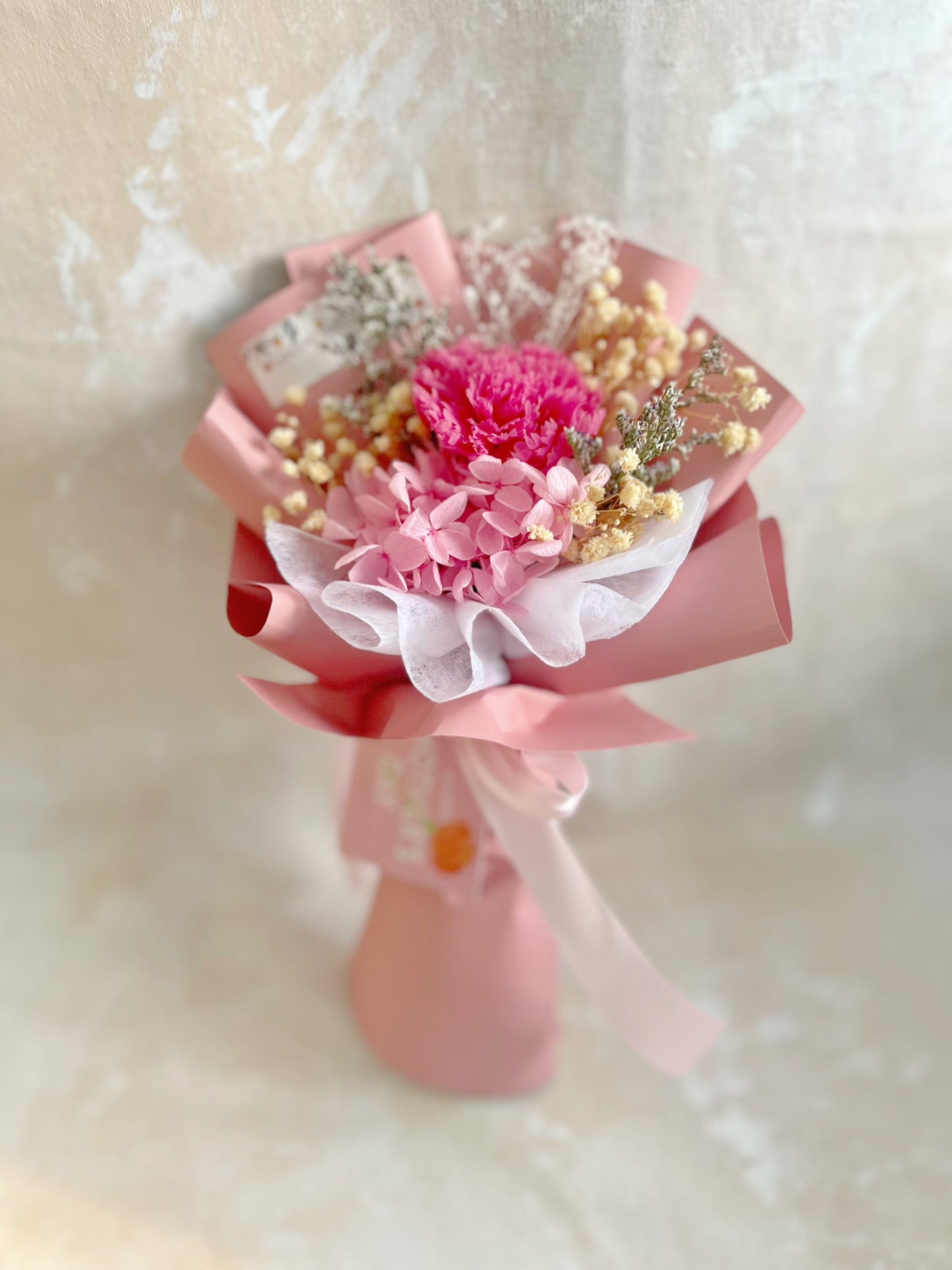 2025母親節系列- 小心意 迷你單枝 桃紅色 保鮮康乃馨花束|保鮮花 永生花 生日花束 M009