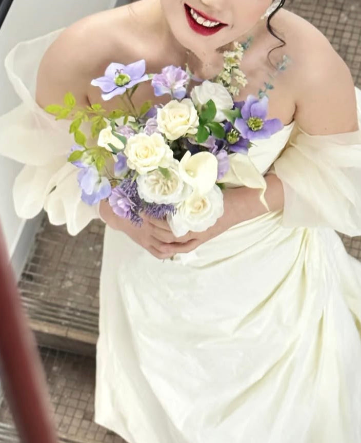 (一個月預訂)紫白色新娘花球-仿真花花球