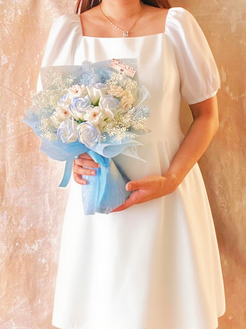 6枝冰藍香梘玫瑰花束 |番梘花|畢業花束 情人節花束 生日花束 中學 小學 幼稚園